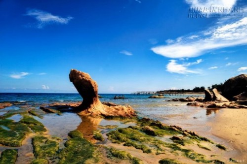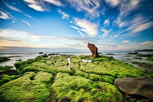 Nhưng đi vào đúng mùa rêu, bạn sẽ được tha hồ chiêm ngưỡng những “hòn đá rêu” xanh mướt, nước biển thì trong veo, trong vắt.