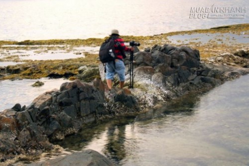 Dân chụp ảnh rêu ngoài chuyện đi săn ảnh rêu đá phải thức khuya dậy sớm, còn phải lưu ý đến thủy triều và thời tiết vì rêu thường hiện ra lúc nước triều đang rút. Nước rút quá cạn, rêu sẽ bị khô. Còn nếu nước đang lớn, sẽ hơi khó chụp rêu trước những cơn sóng bập bềnh vỗ về.