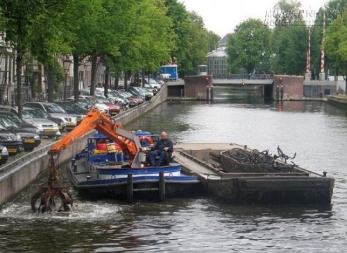 Lượng xe đạp quá nhiều khiến nghề câu xe đạp trên các con kênh trở thành một nghề đặc biệt ở thành phố Amsterdam xinh đẹp của Hà Lan.