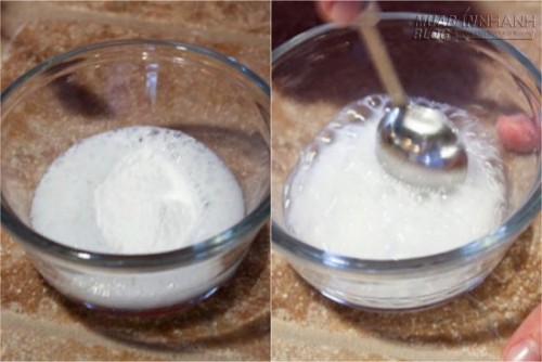 Trộn đều 2 muỗng canh kem cạo râu với ½ muỗng cà phê baking soda, nếu không thích kem cạo râu, bạn có thể thay thế bằng mật ong.