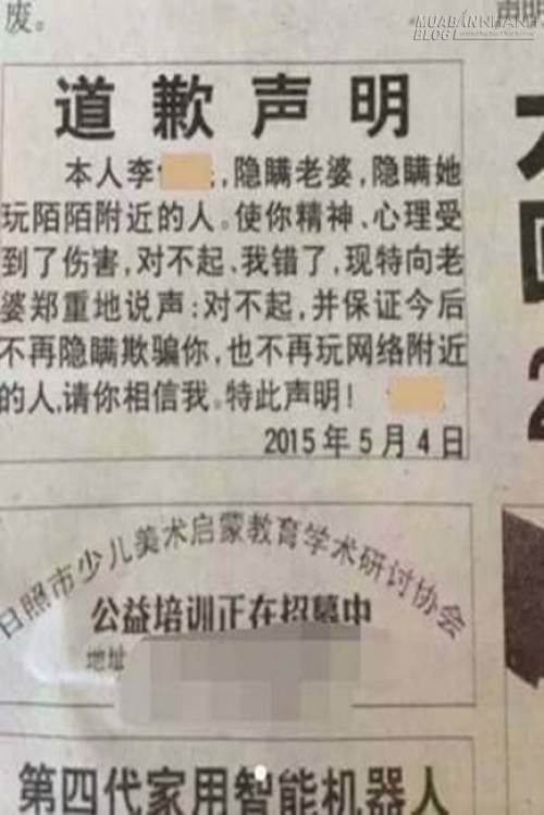 Muôn chiêu xin lỗi vợ lạ lùng của đàn ông Trung Quốc, 62792, Nguyễn Thu Hương Blog MuaBanNhanh