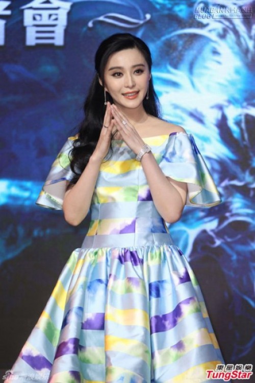 Phạm Băng Băng tươi tắn trong màu son cam quen thuộc. Người đẹp gây ấn tượng với khối mũi cao và đôi mắt trang điểm đậm đà.