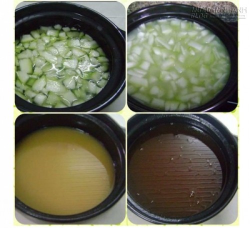 Bước 2: Bí đao gọt vỏ, bỏ ruột, cắt miếng nhỏ cho vào nồi.