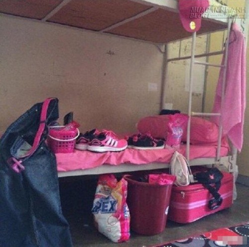 Những hình ảnh cho thấy, chàng sinh viên này cuồng màu hồng, tất cả những vật dụng sinh hoạt cá nhân đều bị anh chàng ‘hồng hóa’.