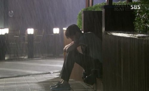 Một người đứng dưới cơn mưa tầm tã đang chờ Linh – là Trung! Cả người ướt sũng…