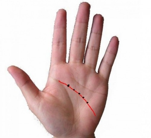 1. Đường trí tuệ xuất hiện những chấm nhỏ, màu sắc khác nhau cũng báo hiệu rất nhiều điều không may mắn. Nếu chấm nhỏ có màu đỏ, rất có thể chủ nhân của nó sẽ gặp phải tranh cãi, kiện tụng, bị tổn thương và thụ hại. Nếu chấm nhỏ màu đen cho thấy người này dễ mắc bệnh nan y, có thể liên quan đến não bộ hoặc vấn đề về thần kinh. ( Hình ảnh 1)