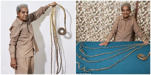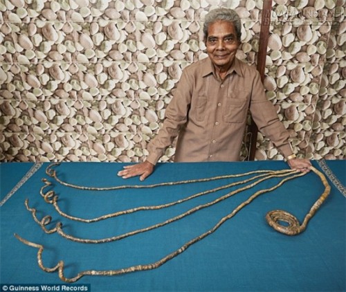 Ông Shridhar Chillal - 78 tuổi đến từ Ấn Độ đã nuôi móng tay kể từ khi ông còn đi học. Kết quả, bộ móng đã mang lại cho ông danh hiệu người có móng tay dài nhất thế giới. Nhưng ông cũng thừa nhận, móng tay siêu dài khiến ông gặp khó khăn khi tìm việc làm và tìm người yêu.