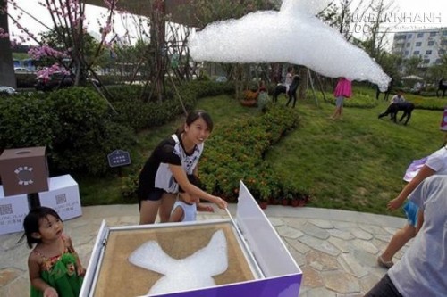 Gần đây, người dân ở tỉnh Hồ Nam, Trung Quốc đã bị hớp hồn bởi những đám mây giả đẹp mắt, đủ hình dáng bay lơ lửng xung quanh. Và không dừng lại ở việc ngắm nhìn, việc có thể tự mình tạo nên những đám mây càng khiến mọi người "chết mê chết mệt". Được biết, đây là một sản phẩm đầy sáng tạo của một người đàn ông Trung Quốc, và anh cũng đã mở công ti để sản xuất và quảng bá rộng rãi.