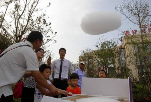 Thành phần chính tạo nên “đám mây” này chính là bọt xốp có bơm khí Heli vào bên trong. Do đó, nó có thể bay lên trời tương tự bóng bay rất đẹp mắt. Thậm chí, những đám mây nhân tạo này có thể bay cao hàng trăm mét. Hiện công việc kinh doanh “mây” đã mang lại doanh thu 10.000 nhân dân tệ (tức khoảng 35 triệu đồng) mỗi ngày cho công ti.