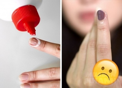 Nhằm giúp sơn móng tay không bị lem nhem ra bên ngoài, bạn chỉ cần dùng keo dính thoa đều xung quanh móng. Đợi hỗn hợp dần khô thì bạn dùng tay lột nhẹ nhàng lớp keo dính.