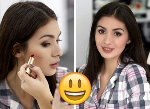 7. Dùng son môi thay phấn má
