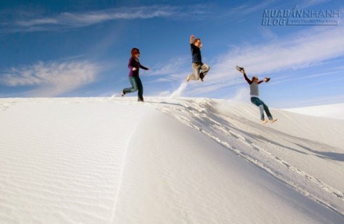 Du khách thỏa thích nô đùa trên sa mạc cát trắng như tuyết