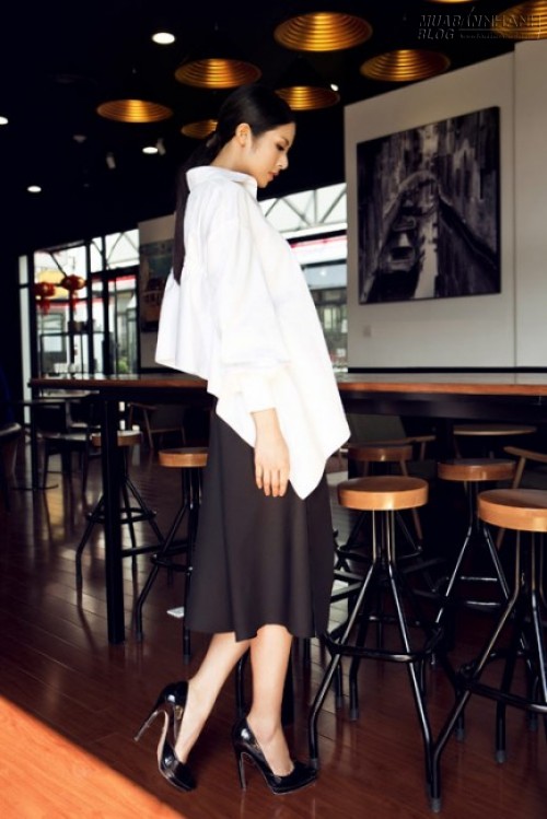 Có lúc, Hoa hậu làm mới mình bằng thiết kế sơ mi hớt vạt độc đáo, thu hút chú ý ngay từ ánh nhìn đầu tiên.