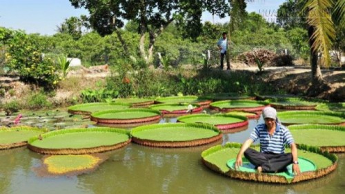 Mùa nước nổi tháng 9-10 cũng là lúc thích hợp để bạn đi ngắm sen vua. Bởi lúc đó, lá sen ra nhiều, to, dày dặn, bao phủ kín mặt ao. Ao sen hình vuông với các lá sen hình tròn tượng trưng cho trời tròn, đất vuông theo quan niệm của người xưa.