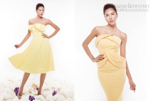 Hai người đẹp diện những bộ váy màu sắc nằm trong bộ sưu tập do chính Vũ Thu Phương thiết kế.
