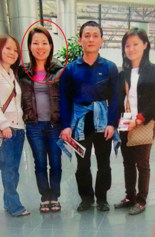 Chị Thu Trang (khoanh đỏ) cùng với 3 người con đẻ của bà Hạnh