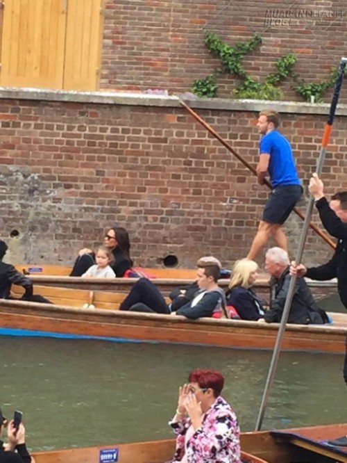 Hôm qua, cả gia đình Becks tận hưởng một buổi chiều thư thái và thú vị với chuyến đi dạo trên sông Cam ở Cambridge. Becks cùng ba cậu con trai, cháu trai nhà vợ và bố mẹ vợ ngồi một thuyền đáy còn trên chiếc thuyền bên cạnh, Vic ngồi cùng Harper, em gái Louise và các cô cháu gái.
