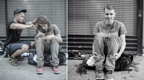 Hãy nhìn xem anh ấy cắt tóc giúp những người lang thang và còn cho họ niềm tin…