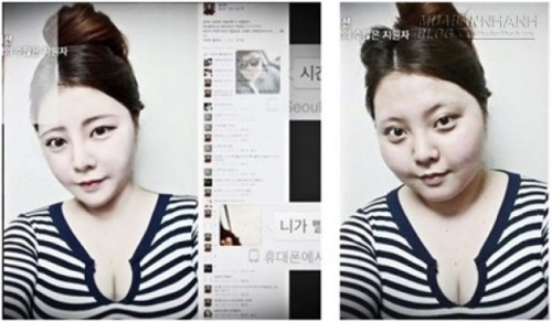 Sự khác biệt về nhan sắc của cô gái trước và sau khi can thiệp bằng phần mềm chỉnh sửa.