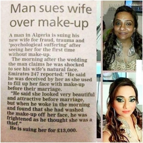 4. Chưa hết, một người đàn ông sống ở Algeria đã “tức nước vỡ bờ” đến độ đâm đơn kiện chính người vợ của mình vì nhan sắc thật của cô nàng. Theo báo chí, ông ta đã khởi tố cô vợ vì các tội trạng như: lừa dối, gây tổn thương tâm lí và đòi hỏi khoản tiền bồi thường trị giá 13.000 bảng Anh.