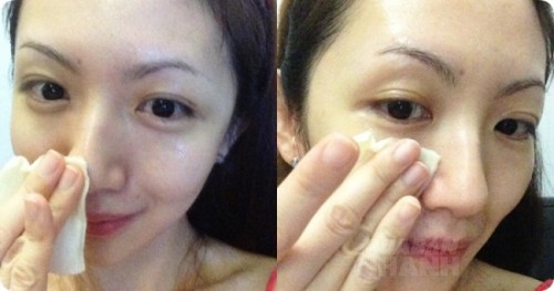 - Khi miếng bông tẩy trang khô thì thấm ướt với hỗn hợp rồi đắp lên da, thư giãn 10 phút thì bỏ các miếng bông đi. Dùng đầu ngón tay massage nhẹ nhàng để các dưỡng chất thẩm thấu vào da.