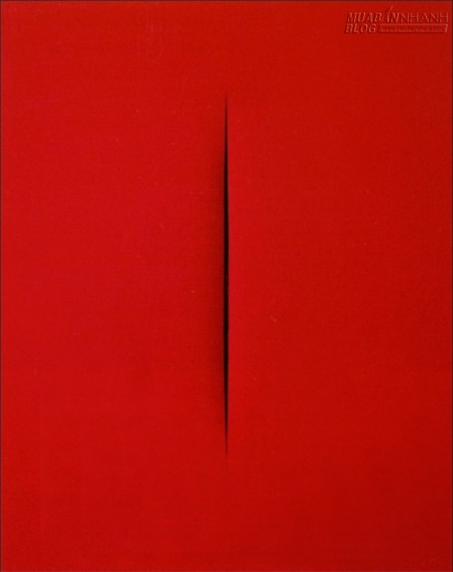 Bức “Concetto Spaziale, Attesa” được bán với giá 1,2 triệu USD vào năm 2008, là bức vẽ Fontana dành tặng cho vợ mình, và chỉ có duy nhất một nét vẽ trên nền đỏ thẫm.
