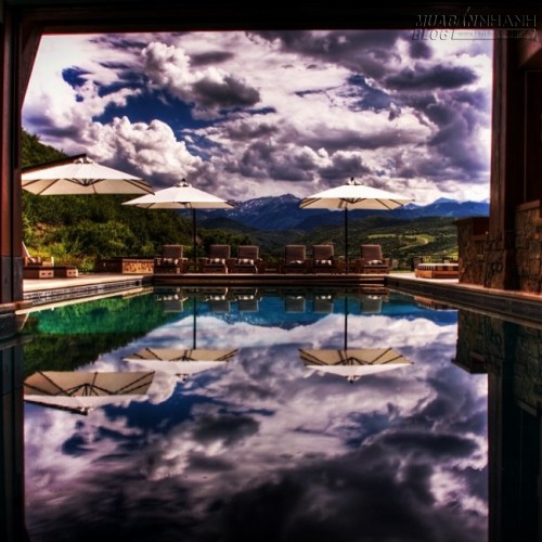 Chủ nhân căn biệt thự ở Snowmass, Colorado (Mỹ) này đã cho xây hẳn một bể bơi nửa trong nhà, nửa ngoài trời. Nếu thời tiết chuyển biến xấu, chỉ cần bấm nút là một bức tường kính sẽ hạ xuống ngăn đôi bể bơi.