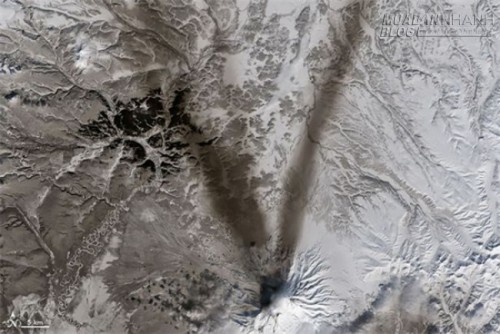 Tuyết bao phủ trên núi nửa Shiveluch ở bán đảo Kamchatka ở Nga.