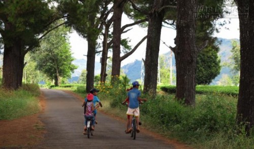 Tây Nguyên có những con đường làng tuyệt đẹp, một bên đồi Trà, con đường nhỏ in bóng mát dưới hàng thông.
