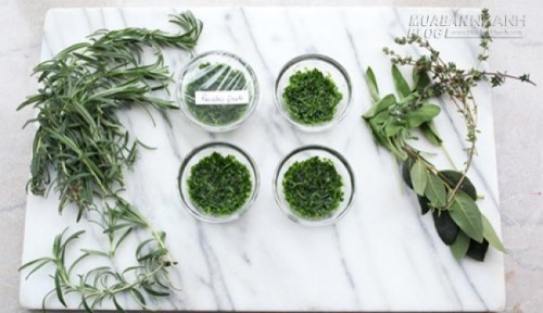 Muốn để các loại lá gia vị được lâu mà vẫn giữ được mùi vị, bạn nên sấy khô các loại lá đó rồi trữ vào những lọ kín. Hãy rửa sạch những loại lá đó rồi ngắt ra khỏi cuống. Tiếp đó, cho vào lò vi sóng quay khoảng 30 giây cho đến khi nước bốc hơi và các lá trở nên giòn.
