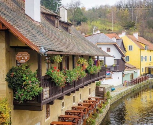 Nhà hàng bên sông Vltava đoạn chảy qua Cesky Krumlov |