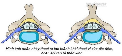 Ảnh bên phải cho thấy bệnh nhân đã bị thoát vị đĩa đệm.