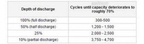 Pin của bạn sẽ kéo dài tuổi thọ nếu bạn sạc nó thường xuyên hơn và tránh thải cạn năng lượng. Bảng bên dưới cho thấy chu kỳ pin tương ứng với mức xả khác trước khi dung lượng pin bị suy giảm 30%.