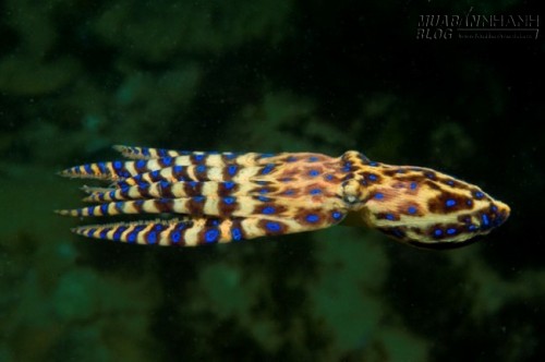 Bạch tuộc đốm xanh khá nhỏ, nhưng nọc độc đủ để giết chết 24 người trưởng thành trong vòng vài phút. 10 phút sau khi bị tấn công, nạn nhân thường sẽ bị tê liệt. Ảnh: Mpora.