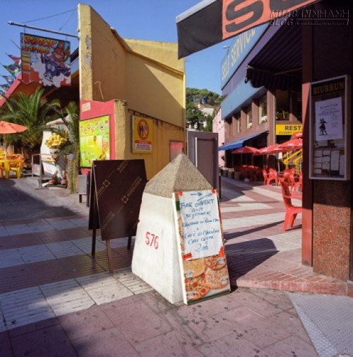 Nằm giữa biên giới Pháp và Tây Ban Nha, ngôi làng này tự quảng cáo là “trung tâm mua sắm biên giới vĩ đại”, mở 365 ngày trong năm. Trên hình là cột biên giới 576 và được sử dụng để đặt thực đơn cà phê.