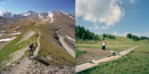 D6327 là con đường nằm giữa Italy (trái) và Pháp. Ranh giới giữa hai nước này được đánh dấu bởi đường nứt ngang mặt đường. Đó là kết quả của việc bảo trì giao thông khác nhau của mỗi nước.