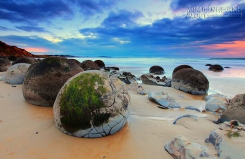 Đá Moeraki: Những tảng đá lớn hình tròn lạ lùng này nằm dọc bãi biển Koekohe ở New Zealand. Theo truyền thuyết, chúng là giỏ bắt lươn của người Maori, hoặc là di tích của con thuyền lớn tên Arai-te-uru. Tuy nhiên, theo các nhà khoa học, các tảng đá Moeraki là sự kết hợp của phù sa, bùn và đất sét, cứng lại do quá trình canxi hóa, hình thành từ cách đây hơn 50 triệu năm. Hình ảnh của chúng thường xuất hiện trong các quảng cáo du lịch của New Zealand. |