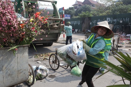 Sau Tết, những bãi rác nghi ngút được chất đầy các tuyến đường ở thành phố. Lẽ dĩ nhiên là phần việc dọn dẹp, tân trang lại phố phường sẽ đến tay các cô chú lao công. (Nguồn: Dân việt).