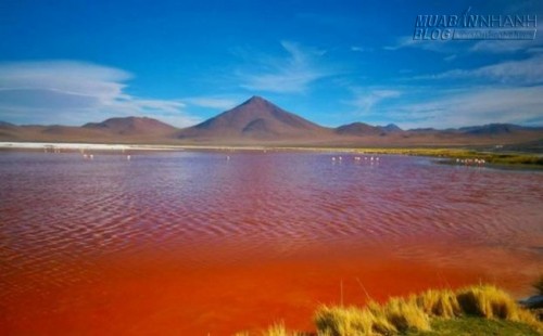 Hồ muối đỏ Laguna Colorada, Bolivia: Laguna Colorada là một hồ muối cạn tọa lạc ở phía tây nam cao nguyên của Bolivia, sát với biên giới Chile. Trong hồ chứa những đảo muối borac trắng xóa, đá trầm tích và một số loài tảo màu đỏ tạo nên vẻ đẹp kỳ lạ. Đây cũng là nơi tập trung rất nhiều giống chim hồng hạc quý hiếm.