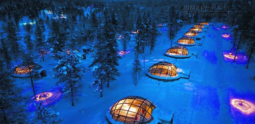 Resort Kakslauttanen Arctic ở phía Bắc Phần Lan gồm 20 lều kính giữ nhiệt, nơi du khách có thể ngủ ngoài trời tuyết để ngắm cực quang thường xuất hiện từ tháng 1 đến tháng 3 hàng năm. Khu nghỉ này có cả phòng tắm hơi lớn nhất thế giới. Giá cho một người/ đêm ở Kakslauttanen Arctic resort là từ 400 USD.
