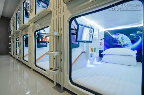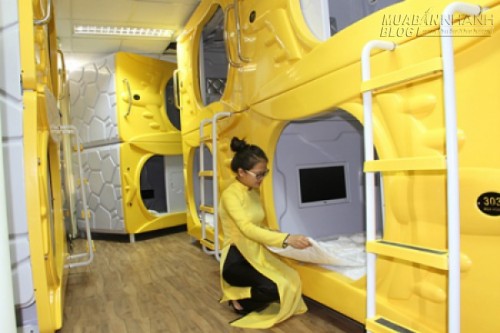 Với 56 buồng ngủ nhỏ có diện tích khoảng 2 m2 được xếp thành hai tầng, mỗi buồng dành cho một khách, bên trong có ti vi, máy lạnh, két sắt, wifi và thiết bị cứu hỏa.