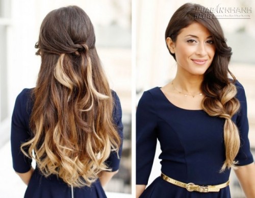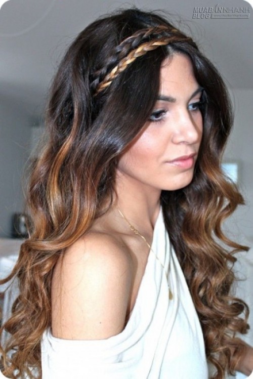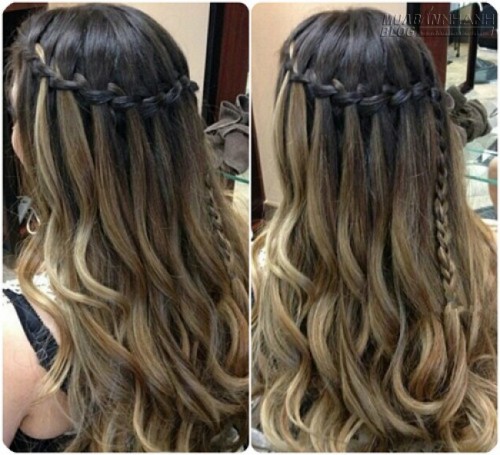 Tương tự như tóc ombre thẳng, kiểu tóc tết thác nước cũng cực ăn ý với tóc ombre uốn xoăn đấy nhé!