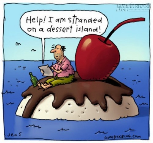 Lời kêu cứu của người đàn ông này thực sự khó hiểu: "Cứu! Tôi đang bị mắc kẹt trên một hòn đảo toàn món tráng miệng". Nhẽ ra, từ "dessert" cần được thay bằng "desert" có nghĩa "sa mạc".