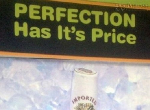 Câu quảng cáo "Sự hoàn hảo có cái giá của nó" đã phải trả giá vì viết chữ "its" thành "it’s" và khiến nó trở nên sai ngữ pháp, vô nghĩa.