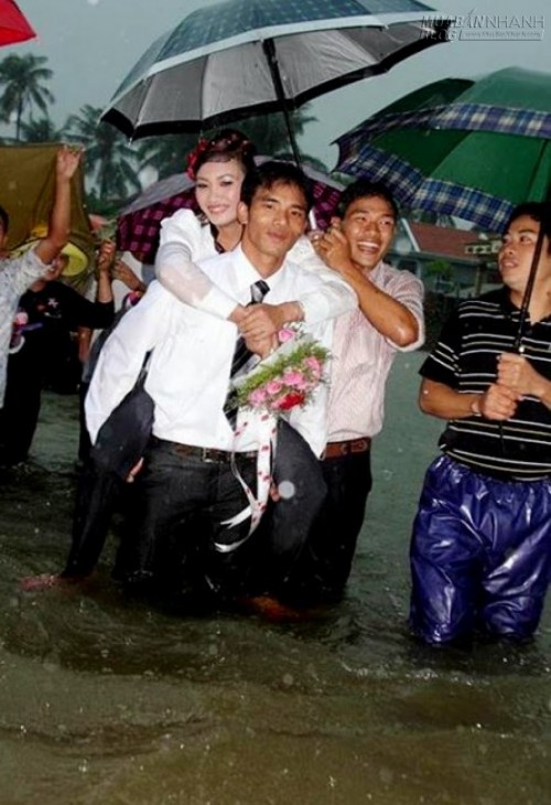 Xin được gửi tới bạn đọc những hình ảnh đám cưới mùa mưa lũ đáng chú ý:
