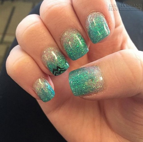 Mẫu nail này với gam màu chủ đạo là xanh và vàng được điểm xuyết tông trắng và đen sành điệu sẽ là mẫu nail đại diện cho Nhân mã.
