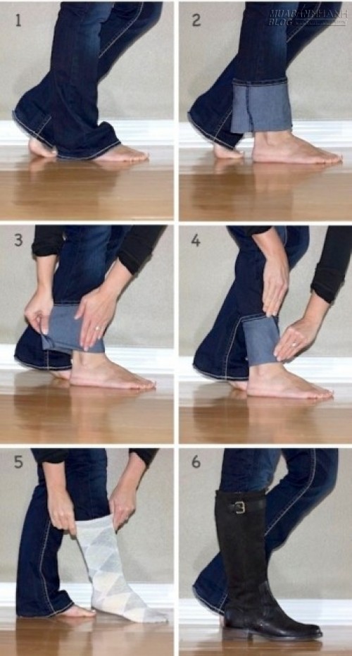 Đây chính là cách để bạn xỏ đôi giày boot cao cổ vào chiếc quần jeans ống rộng của bạn