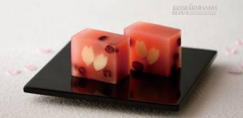 Sakura Yokan – Món thạch rau câu cho ngày hè nóng nực. Yokan là một loại thạch làm từ bột rau câu truyền thống của Nhật, phổ biến nhất là nhân đậu đỏ. Mỗi miếng Yokan giống như một tác phẩm nghệ thuật trang trí vô cùng đẹp mắt, khiến nhiều người thậm chí còn không nỡ ăn. Ảnh: Pinterest.