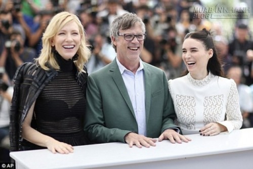 Hai nữ diễn viên Cate Blanchett và Rooney Mara cùng đạo diễn Todd Haynestại buổi họp báo bộ phim về đồng tính nữ Carol tại Liên hoan phim Cannes. (Ảnh: AP)