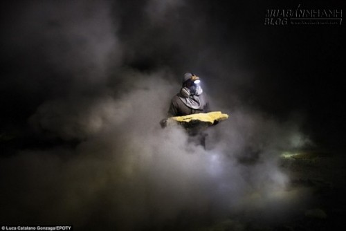 Bức ảnh chụp từ núi lửa Kawah Ijen, miền Đông Java (Indonesia) này mô tả chân thực về lượng khói lưu huỳnh độc hại thoát ra từ một mỏ “vàng” ở Indonesia, có tên là “Vàng của quỷ” (The Devil’s gold).